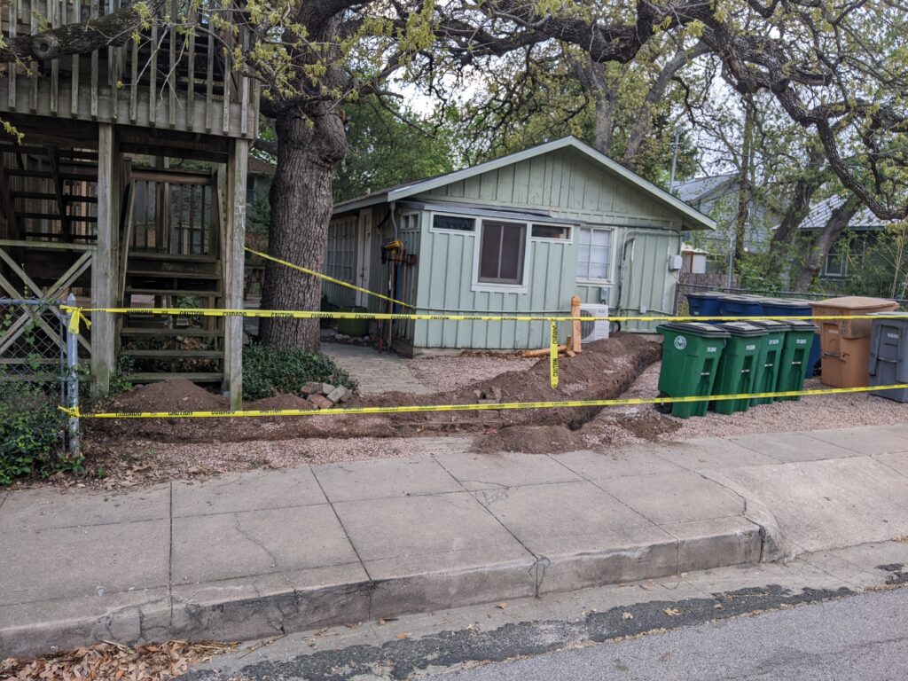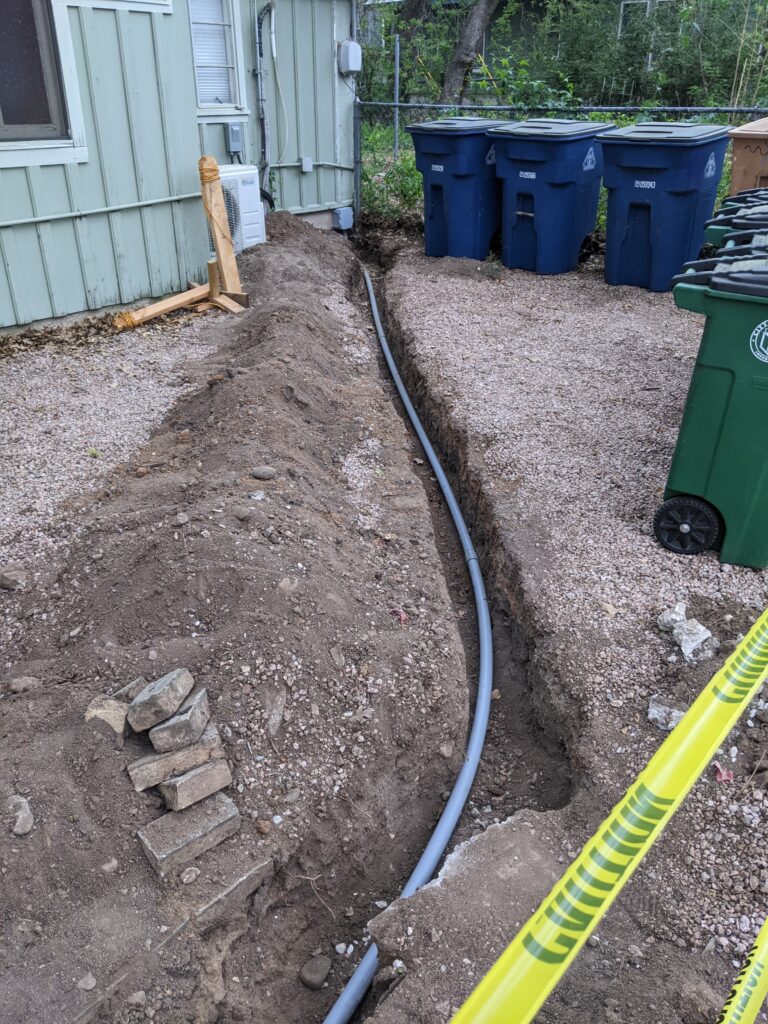 If you walk past the temple on 31st today, you will notice a large trench in the yard between the Carriage House and the Temple. The contractors are connecting the lines to ensure sufficient power for all of the new appliances.