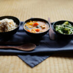 This has come to mean a certain kind of formal, ritualized eating, but the word oryoki actually refers to the specific collection of bowls and utensils used to eat. An elaborate set is traditionally given to a priest on their ordination. In our temple both priests and lay persons use oryoki, eating while seated on a cushion or in a chair with a small table. The meal is silent except for chanting before each phase of the meal.